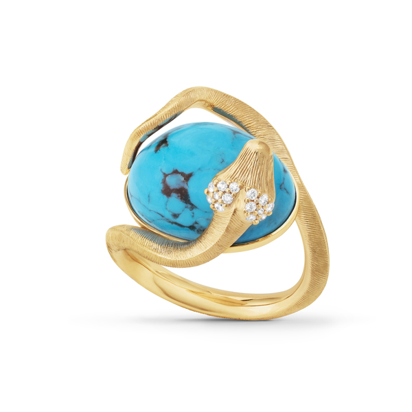 Bague Snakes, or jaune, diamants et Turquoise.