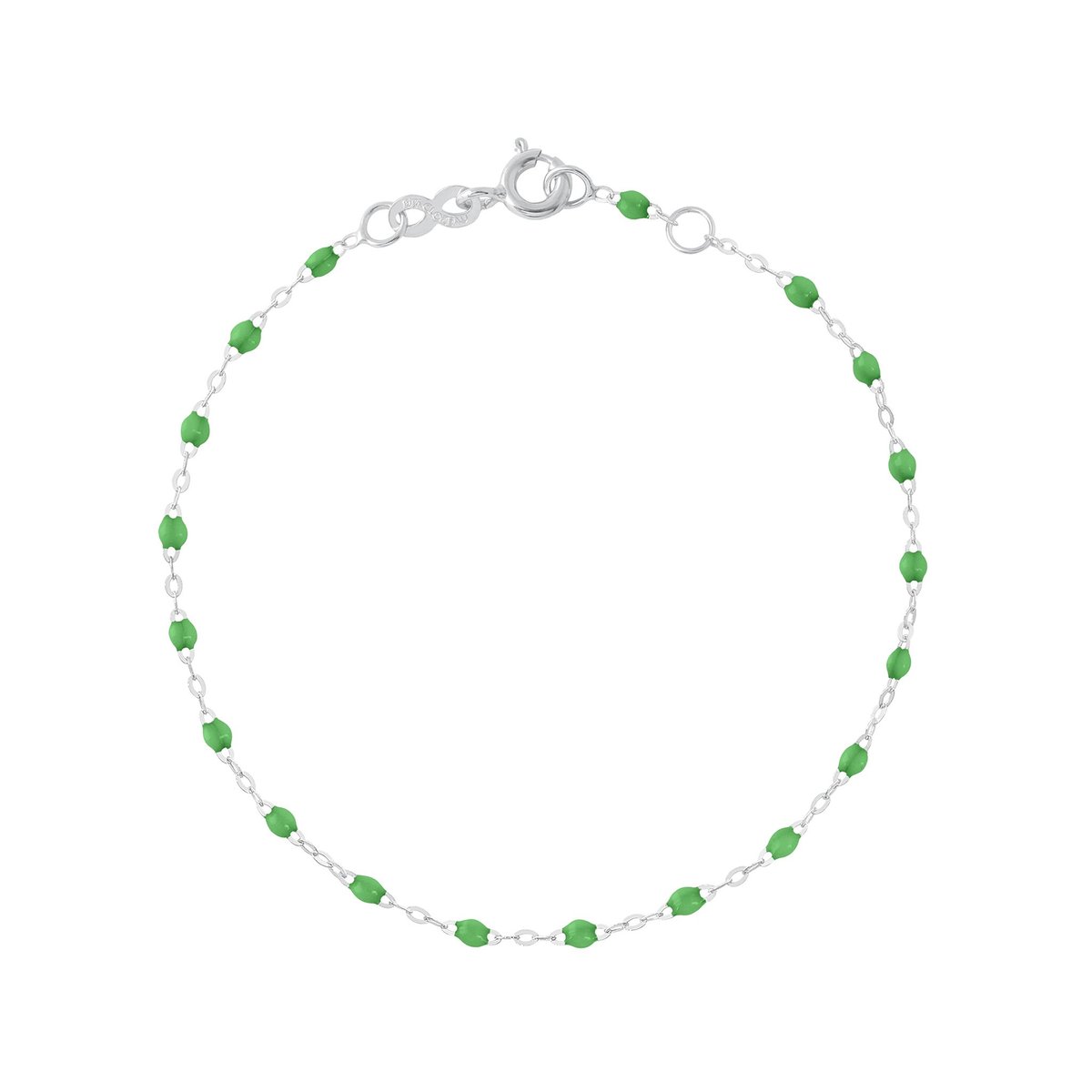 Fabriqué dans les ateliers Clozeau du sud de la France, cet assortiment de couleurs de perles de résine sont montées sur une chaîne en or 18 carats.