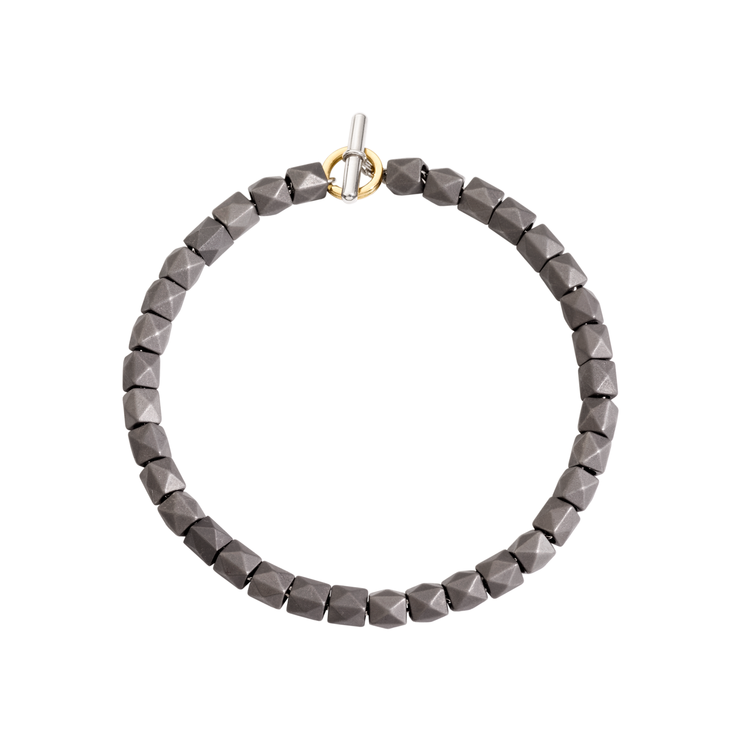 Bracelet Stud en titane, chaîne argent, anneau brisé en or jaune 18 carats.