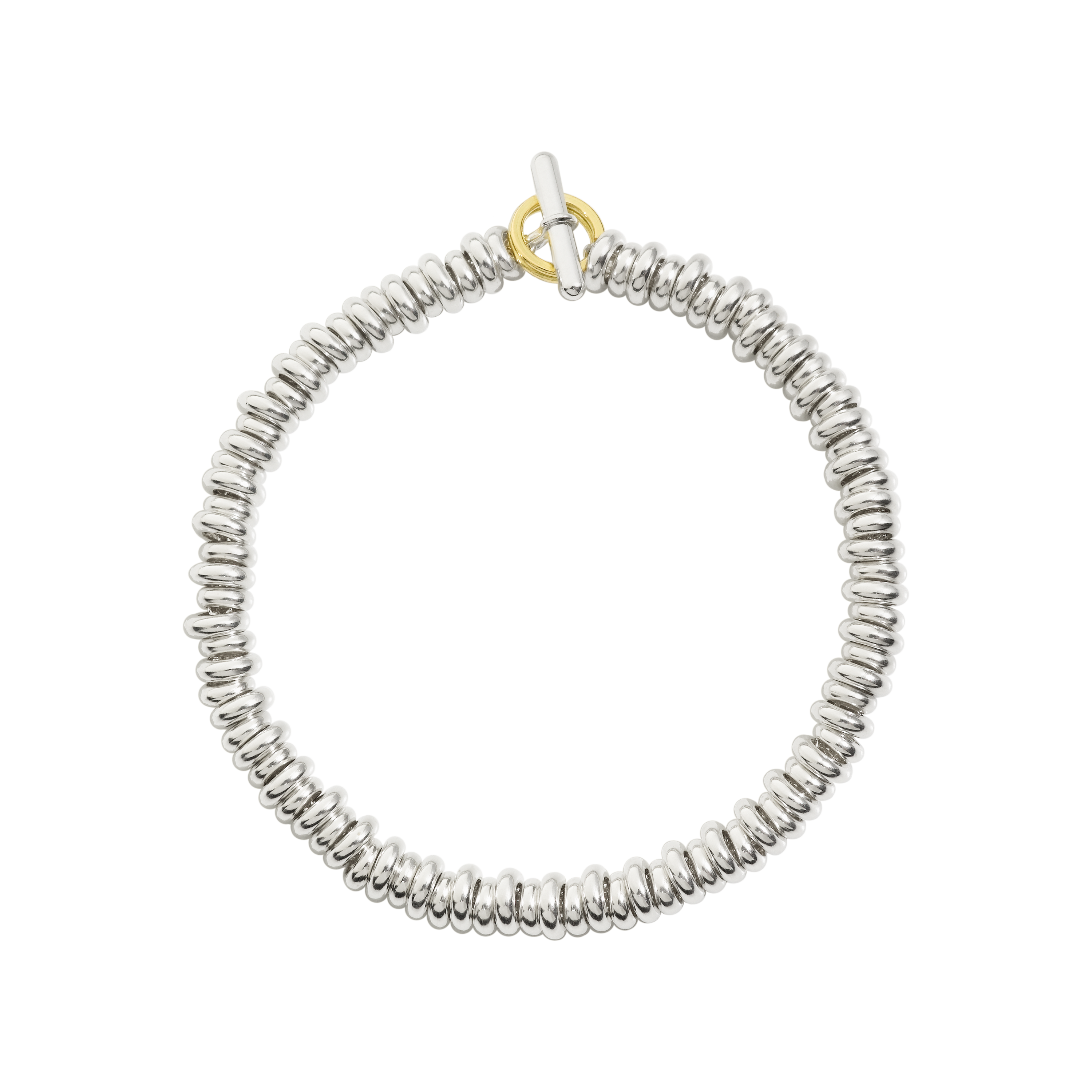 -Bracelet Rondelle argent, anneau brisé en or jaune 18 carats.