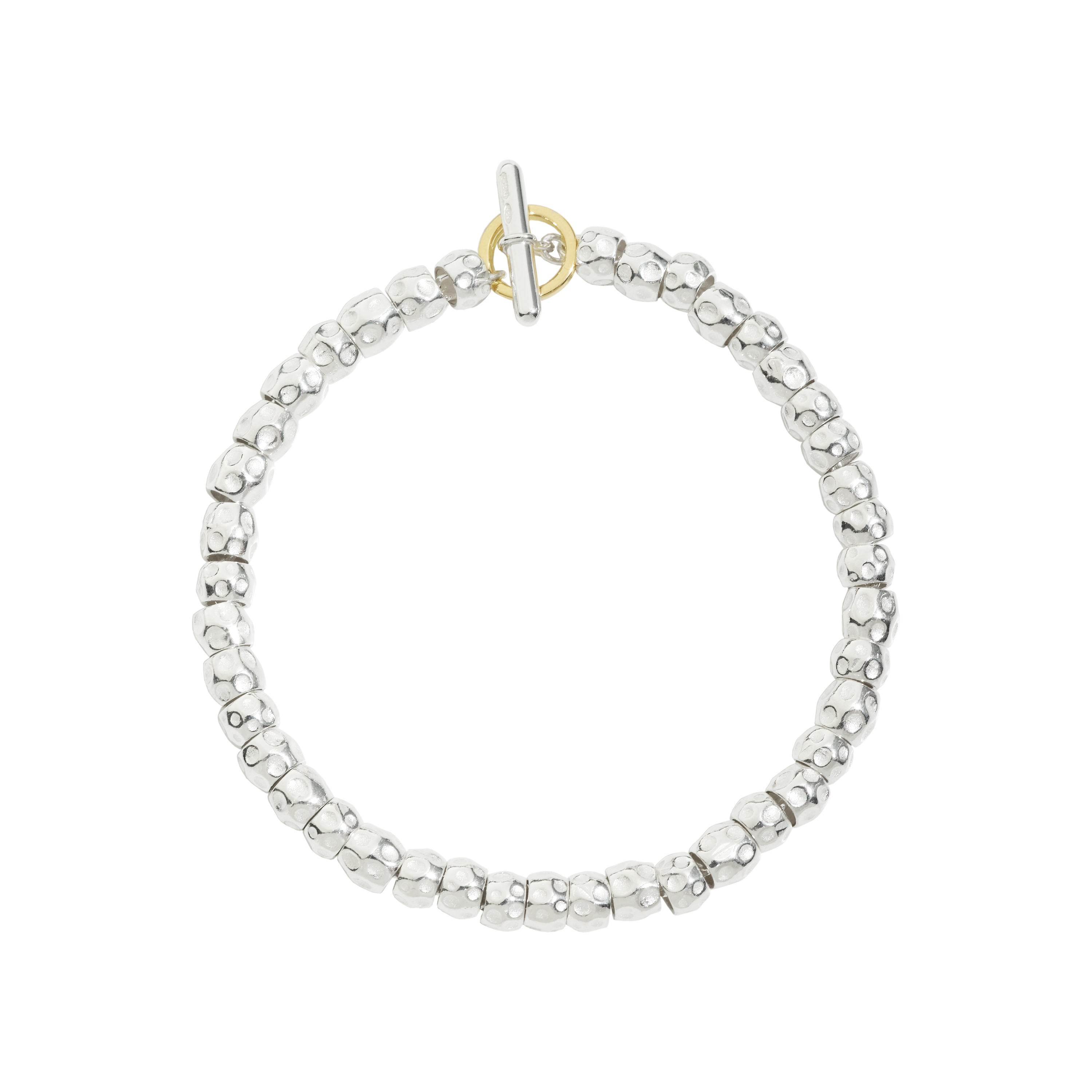 Bracelet Granelli argent, anneau brisé en or jaune 18 carats.