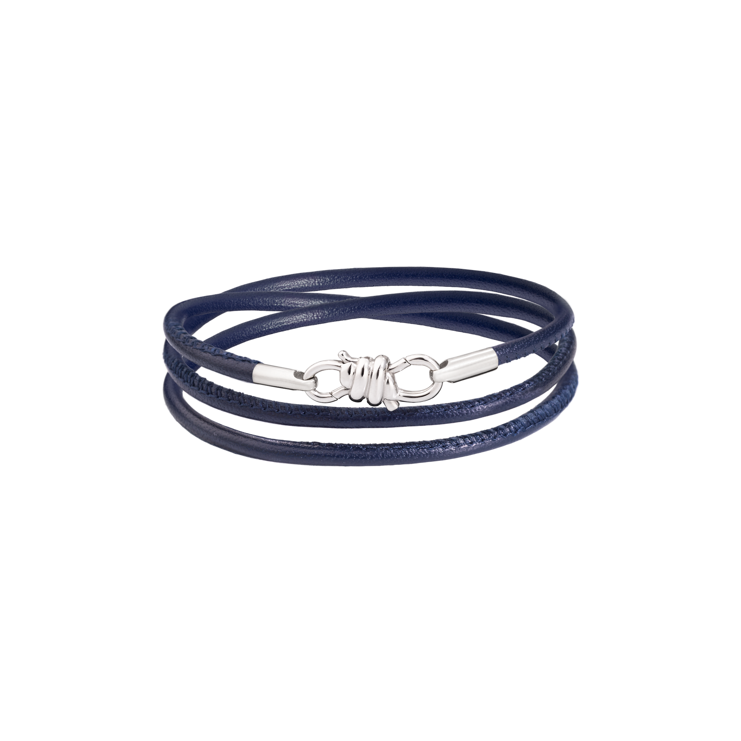 Bracelet Nodo en cuir bleu avec fermoir en or blanc 18 carats.