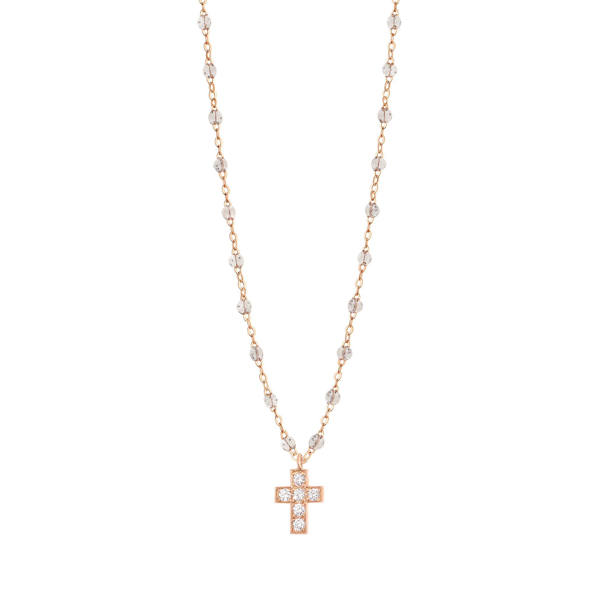 Caractéristiques: chaîne gigi avec perles de résine, pendentif croix or 6 diamants (0,12 ct)