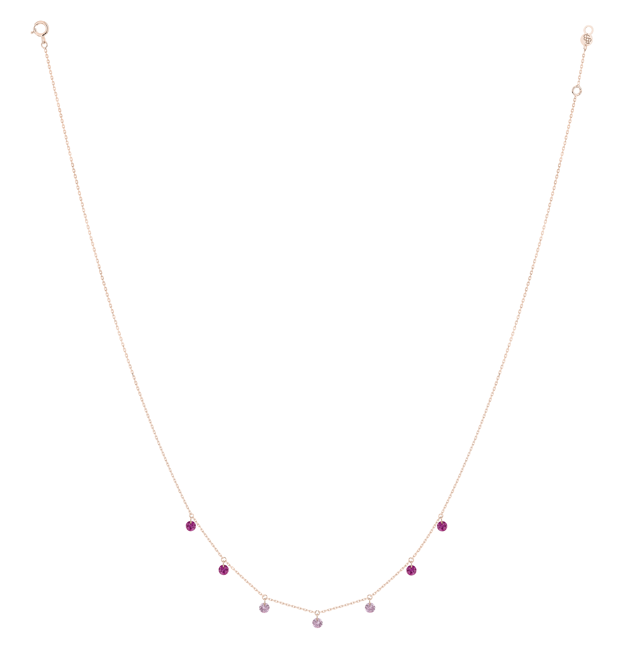 Collier délicatement coloré de pierres roses précieuses et semi précieuses, pour mettre de la gaieté dans votre vie de tous les jours.
