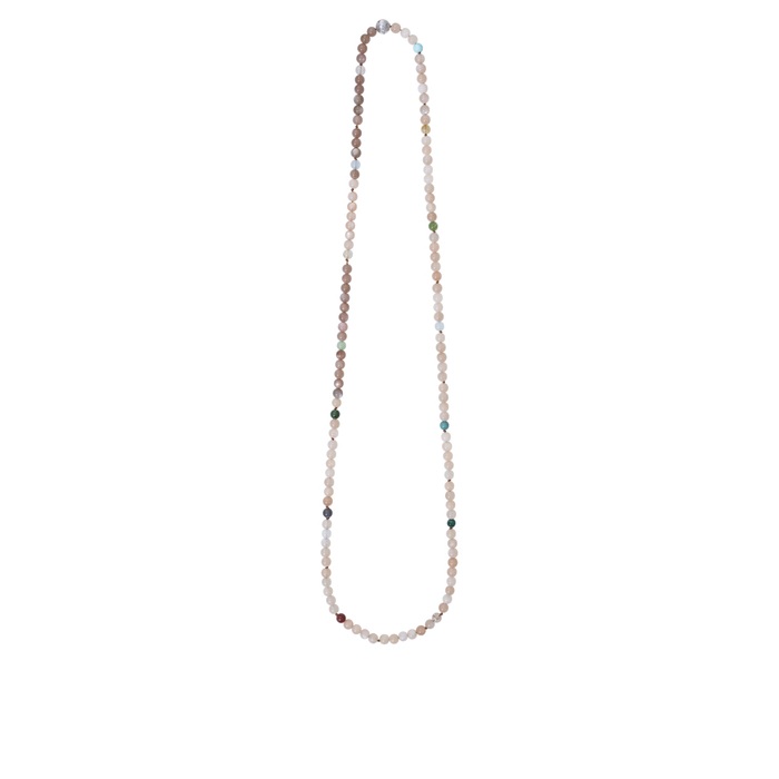 Bead collier mix of blush, serpentine, aquamarine, turquoise, malachite, grey moonstone, rutile and carneleon, 80 cm.