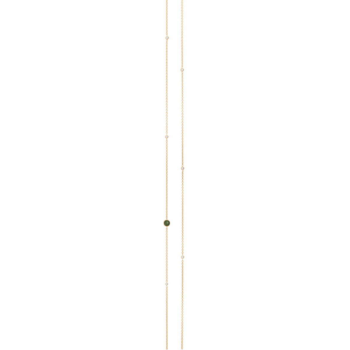 Collier design Charlotte Lynggaard anchor 30, or jaune, carabine green apatite, 5 diamants, 80 cm.