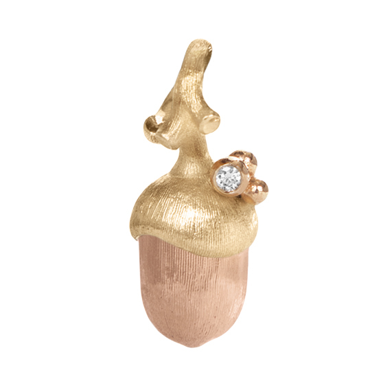 Pendant small acorn Forest Or rose et jaune, un diamant.