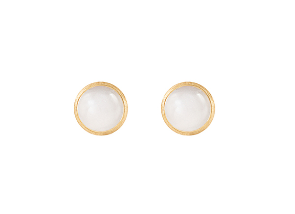 Puces d’oreilles Lotus Or et Pierre de Lune Blanche